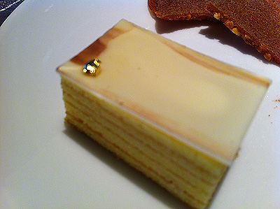 ここらでショコラオランジュなども楽しみつつ、冒頭のペストリーシェフ自慢の5周年スペシャルプティフールが運ばれてきました。