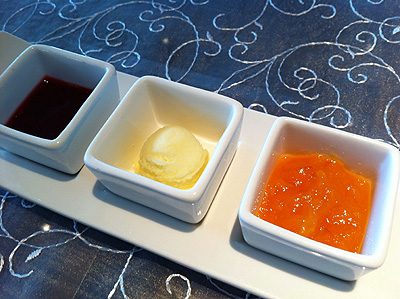左から、グリオット、クロテッドクリーム、マーマレード。