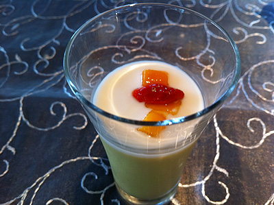 お口直しのマンゴープリン、ココナッツソース。