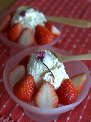 器に盛り、佐賀県産のイチゴ、さがほのかを添えました。