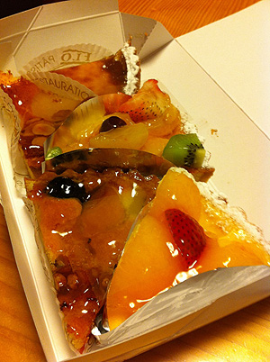 順番にミックスフルーツタルト、洋梨のタルト、“7種のフルーツ”タルト。