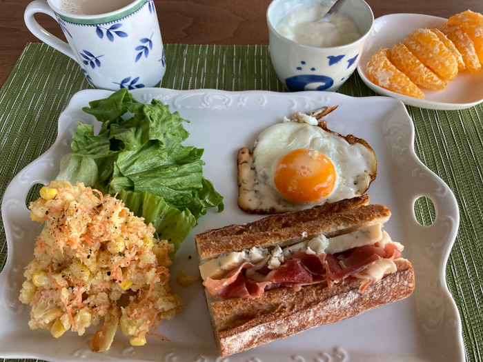 クラストのガリガリしたバゲットで、ハモンセラーノとブルーチーズをサンドしたいと思い、昨日会社帰りに入手したブルディガラのもの。夫からも「こういうバゲットが好き」とのことで及第点のサンドウィッチになりました。