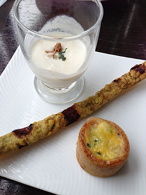 新玉葱の冷製スープも甘いのにさっぱりしていてスターターにとても良い感じ。
