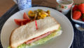 昨日のテイクアウトランチのチャバタが大きかったので、残りは今朝のサンドウィッチにしました。ブリーチーズと焼いたハムをサンドしただけですが、ばっちり。