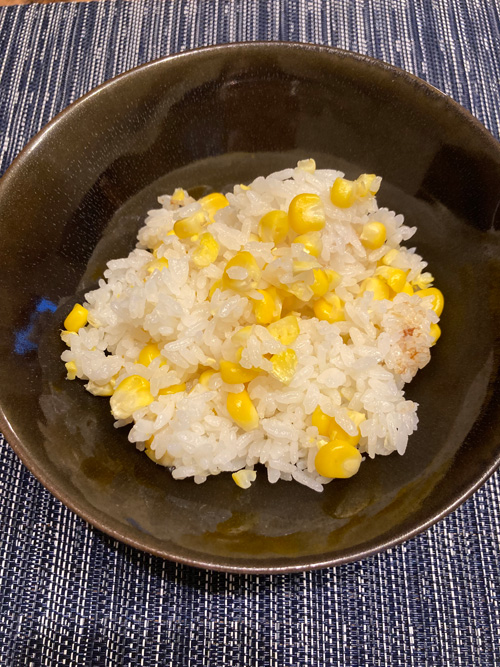 確かにおいしい…!とうもろこしの甘さや出汁がごはんにも反映されています。塩気もあり、食が進みます。久しぶりに夕食でご飯を炊いたので、ちょっと食べ過ぎてしまったかも。最近夜は炭水化物は摂らないようになってきていたのですが、たまにはいいかな。