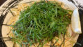 この日はサバの味噌煮と大葉、海苔をトッピング。ざるそばのつゆを掛けるだけ。全体的に混ぜて頂きます。