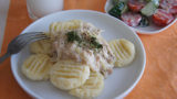 ちゃんぽんも色々バリエーションがあるらしいですが、私はもう普通にちゃんぽんを食べたいので、白。ちゃんぽん蓮粉目にして餃子はちょっとでよかったのですが、うかつにセットでお得を目指して「白ちゃんぽん中&餃子4個」を頼んでしまいました。