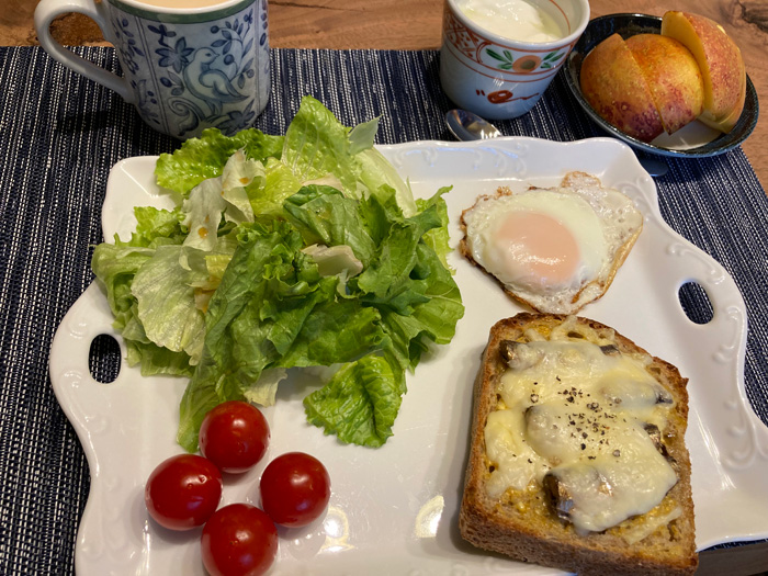 スモークオイルサーディンの最後をピザトースト風にしました。全粒粉パンに風味にも負けません。