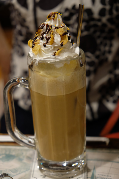 私はデザートと飲み物を兼ねてカフェクイーン700円。生クリームの下にはアイスクリームが浮かんでおり、贅沢な一杯です。