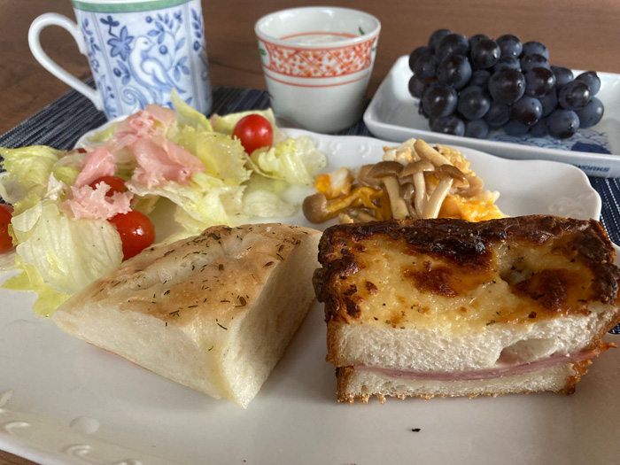 昨日買ったパンをリベイクして朝ごはん。どれも美味しかったです。