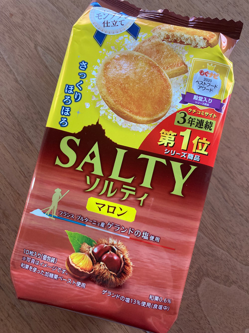 ソルティのマロンを載せていなかったようなので、ずっと前に買ったけど最後の一袋がまだあったので忘れないように記録。