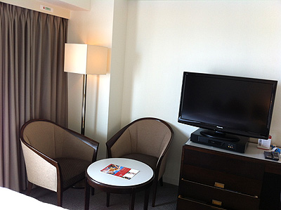 落ち着いた色合いの室内、クラウンプラザに変わる時に内装は一新されたのでしょうね。