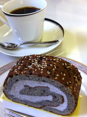 ケーキもだいぶ売り切れていましたが、その中でもゴマ好きの私に嬉しいゴマのロールケーキセットを。