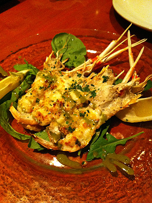 手長エビのグラタンは、ピッツア用の石窯でこんがりと焼かれて、ふっくら美味しい。