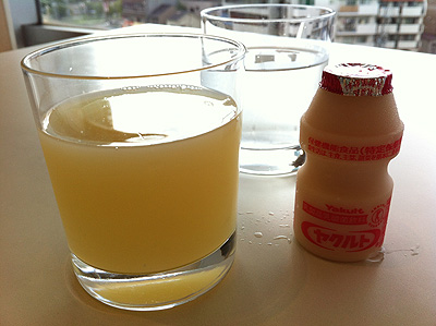 飲み物も豊富で、水はレモン水になってるのも心憎いし、ヤクルトがあるのも嬉しくて数年ぶりに飲んじゃいましたし、グレープフルーツジュースの定番も。