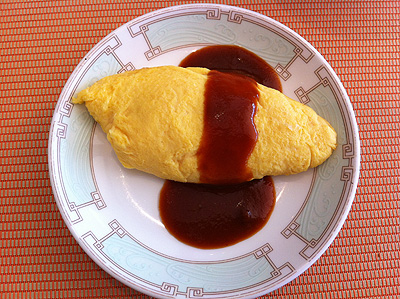 オムレツを受け取って、手前に鍋一杯に用意されたソースを好きなようにかけることが出来ます。