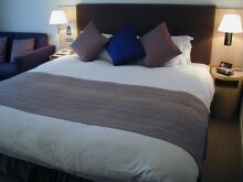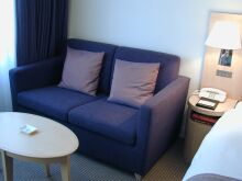 室内はシンプル。ベッドがデュべ(掛け布団)スタイルなのが嬉しい。自宅のように寛いで眠れるから。