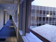 低層階はオフィスで、レストランやカフェは全て1Fにあります。14~17階がホテル。14階のパティオにラウンジが一戸建て風にあります。客室は口の字型に回廊のようにそのラウンジを取り囲んで配置されています。