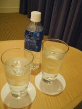 入り口すぐにクローゼットやミニバー。そのミニバーには、ホテルオリジナルの海洋深層水が一人あたり500mlプレゼント。また、水に流せるティッシュも何故かプレゼント。ミニバーのグラス類の揃え方も素晴らしく、お湯呑、マグカップがそれぞれ白で、それからタンブラー、オールドグラスと一通りあって、よくありがちなお湯飲みで紅茶を飲む、という羽目に陥らずに済むのです。素晴らしい。