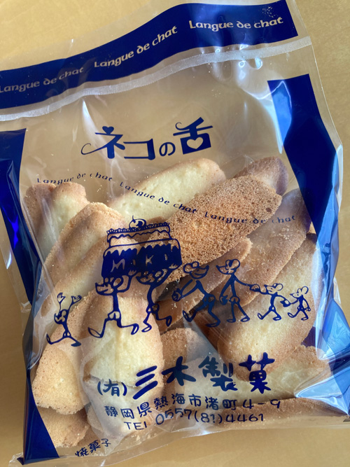 追記:後日、伊東の三木洋菓子店でもネコの舌を購入しました。
