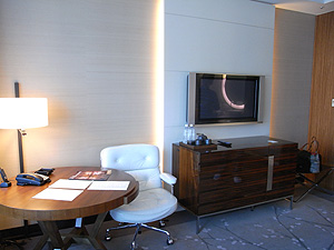ベッドと反対側は、デスクやTV、ミニバー、冷蔵庫など。