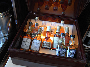 ツヤツヤの箱があり、なんだろうと開けてみたら、洋酒の小瓶がずらり。