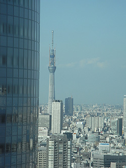 窓の外、ちょっと角度を変えて覗いてみたら、スカイツリーが見えましたよ。