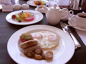 流石イングリッシュブレックファーストということで、食パンも薄い、いわゆるサンドウィッチ用位のスライス。