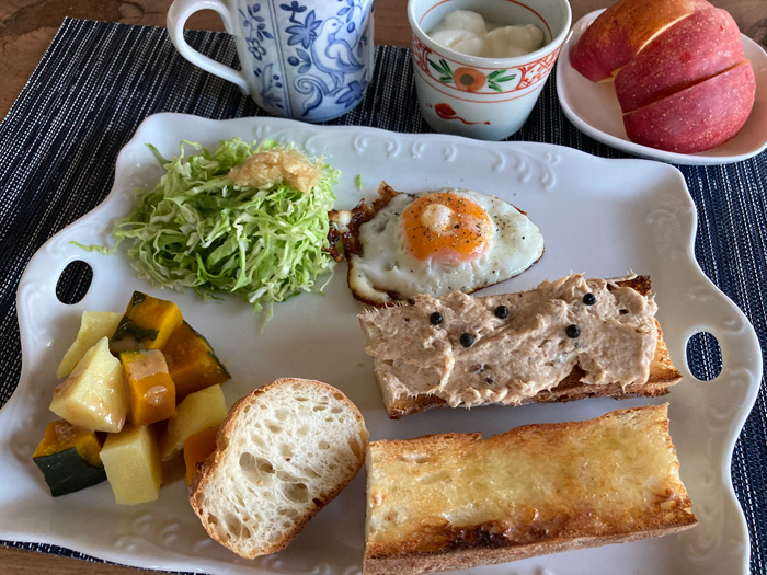 もう一枚はバタートースト、そしてなにも焼かないで食べる一切れ。昨日買った玄米バゲットの食べ比べも兼ねています。どれも美味しいけどやっぱりトーストした方が風味が立つのでいいかな。