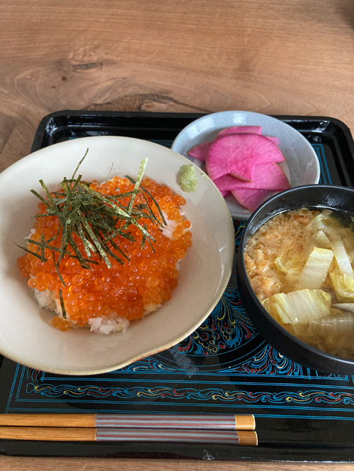 年末年始用に夫がイクラを購入してくれていたので、この日のお昼はイクラ丼。紅しぐれ大根の甘酢漬けもいい色に変化してきました。あとはお味噌汁。