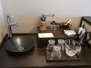 グラスなどが3つずつある処を見ると、3人まで泊まれる部屋なのかなあなんて思ったり。