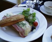 左:サンドセットのクロックムッシュ 右:アフタヌーンセット(私) どちらもアッサムを注文。