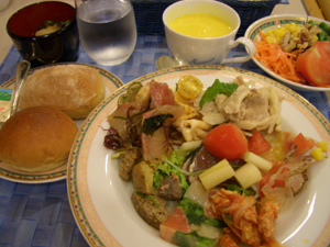 写真に収めるのを忘れましたが、配偶者は和のラインナップ。干物を焼いたのや、梅干など地のものを頂くのは旅先ならではなので、次回は和風で行きたいと思います。