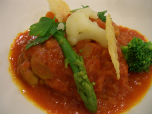 こちらは配偶者の、若鶏のトマト煮 チーズクラスト焼き。