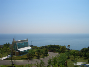 二つの写真は、バルコニーからの相模湾の眺め。