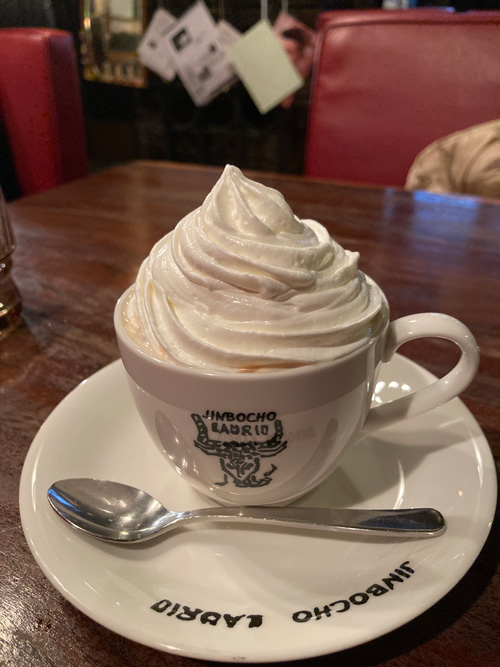 ナポリタンは少しピリッと辛い。そして食後に一番の目的であるウィンナーコーヒー。