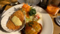 夫はビストロレモンサワーという名の、凍らせたレモンがぎっしり入ったタンブラーにスパークリングワインをなみなみと注いだものを。おかわりスパークリングもできて、その方がよりレモンが溶けて爽やかさが増していたようです。私はオニオンスープを。