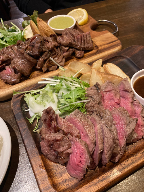 こちらのお店がランチをやっているとのことで、4年ぶりくらいに伺いました。手前は牛リブロースステーキ300g、奥は牛タン炭焼き300gでどちらも1,650円です。もりもり食べて幸せです。熟成肉を手軽に味わえてしかも美味しいので、大好きなお店なのですが、中々おいそれとは伺えないのが残念です。