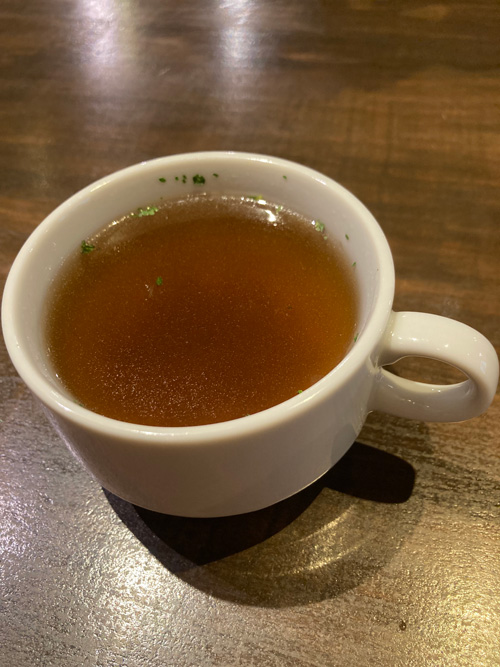 なんと50円。それは追加した方がよいと思わせる価格で、実際最初にこちらを飲んで人心地つき、さあ食べるぞという意欲を掻き立てられました。