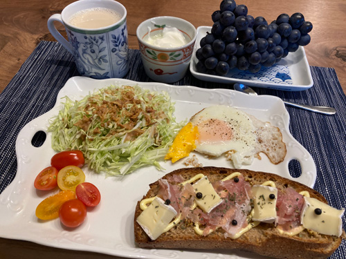 目玉焼きはちょっとあわあわして崩れたので両面焼きにしてしまいました。なぜかこの時期にもスチューベンがあったとかで夫が買ってきてくれていました。調べてみると青森県産のものはりんごの貯蔵技術があるので2月まで出荷ができるのだそうです。なるほど。