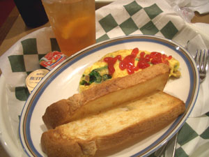 配偶者はフライエッグのセットでソーセージ付に惹かれたようです。500円。