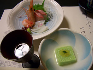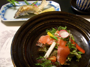 お昼の会席をゆっくりと個室で頂きました。どれもこれも目に鮮やかで手が込んでいて美味しかったです。割合、堅苦しい和のメニューにこだわらず、上の右側のようなサーモンのマリネ、サラダ仕立てなんてものもありました。