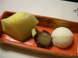 叔母はハトマメやら、ホテルで食べるようにと大福や、また近所のぶどう農家が店に出しているクロレラで育てた美味しいぶどうもどっさり持たせてくれました。わーい、嬉しいよう。大漁だ~。