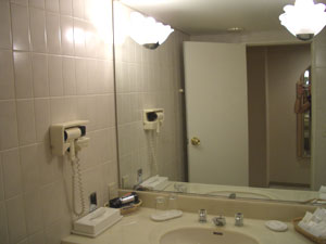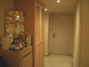 クローゼットやミニバーの奥にもなんだかゆったりしたスペースがあります。右側はバスルームで、これも広くて快適。