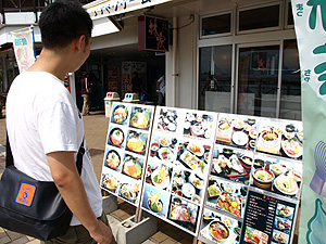 ちょっと目を離したら、夫は他のお店のメニューに釘付け・・・。