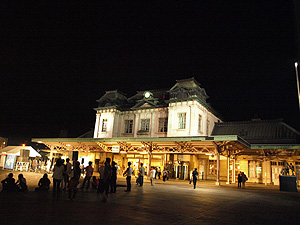 岩盤浴中に、すっかりと日が暮れていて、門司港駅は綺麗にライトアップされていて、より美しい姿を見せてくれていました。