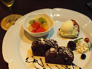 夫は、ガトーショコラ1,050円と白ワインだかスパークリングワイン630円だか。