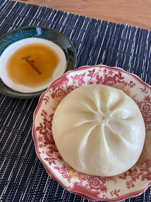 福岡の人間としては肉まんには酢醤油。そのように用意して頂きましたが、中のあんがつるんと固形になっているため、酢醤油は馴染みづらいと気づきました。郷に入っては郷に従えというように、素直に添付の辛子で頂くのがよいかもしれません。美味しい肉まんです。朝食のボリュームが凄かったので、これ一個でちょうどよい。