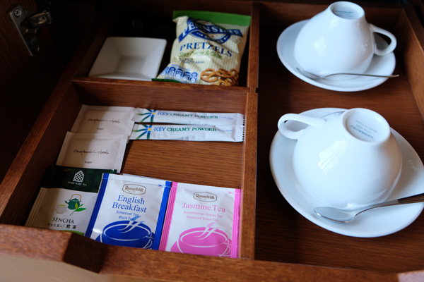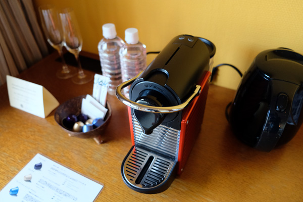 このような温かい飲み物の他に、冷蔵庫のスパークリングワインなどのアルコールやソフトドリンクが無料という太っ腹サービス。