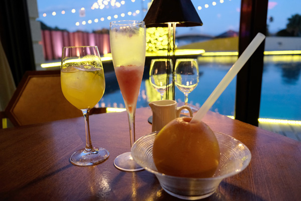 席はプールの真ん前に通していただき、気分良く乾杯。